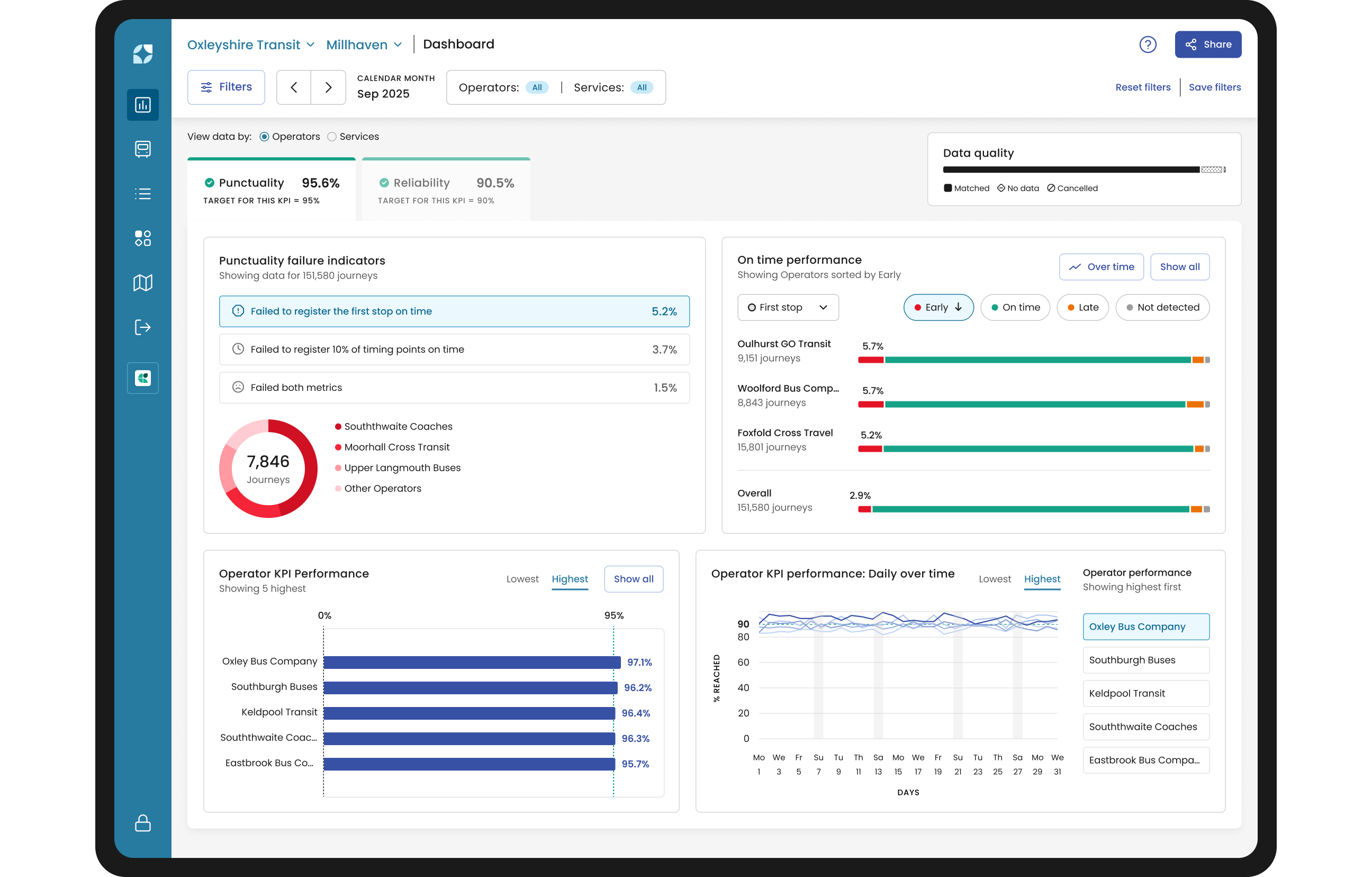 The dashboard always defaults to having the Punctuality tab open.